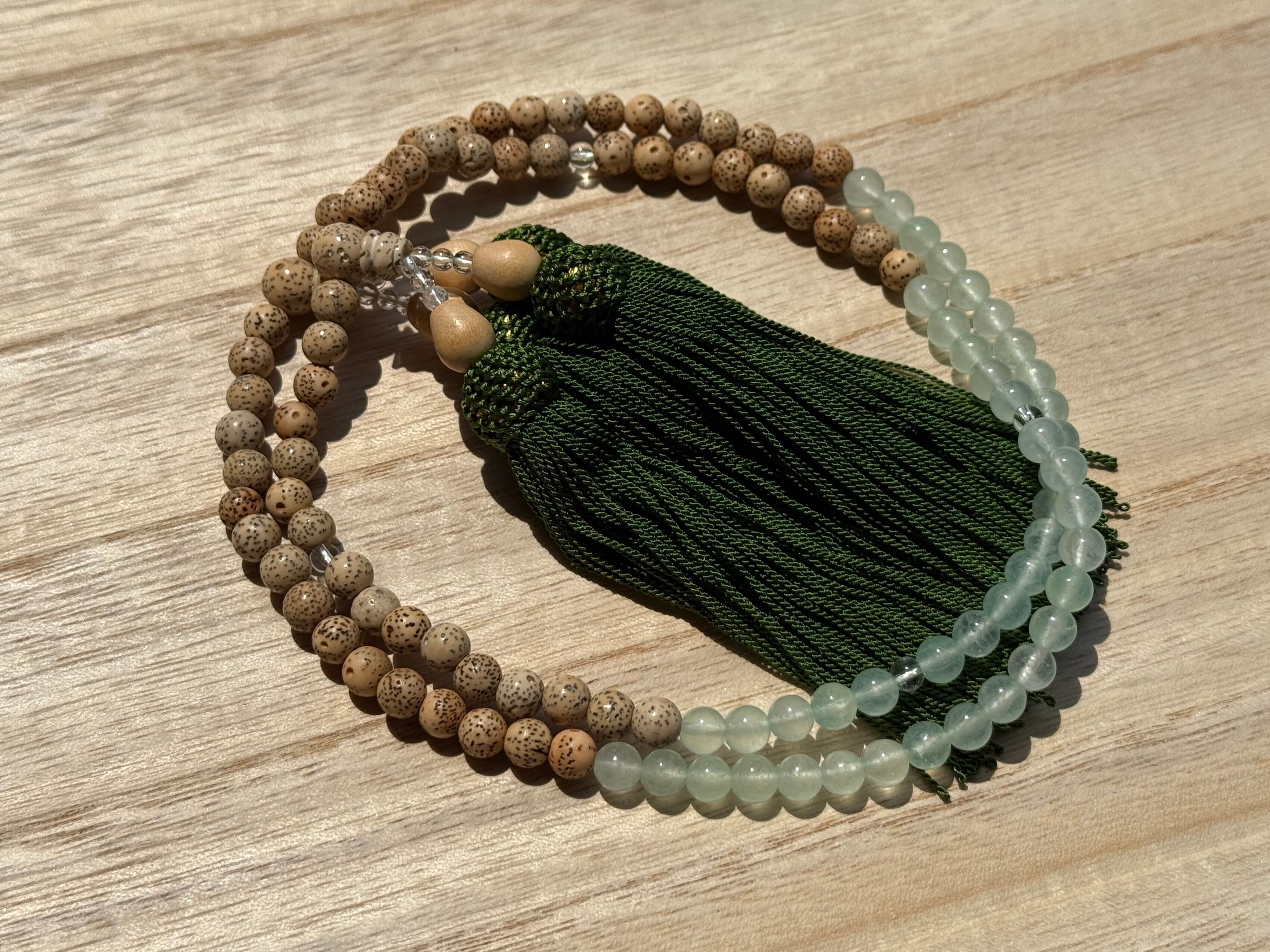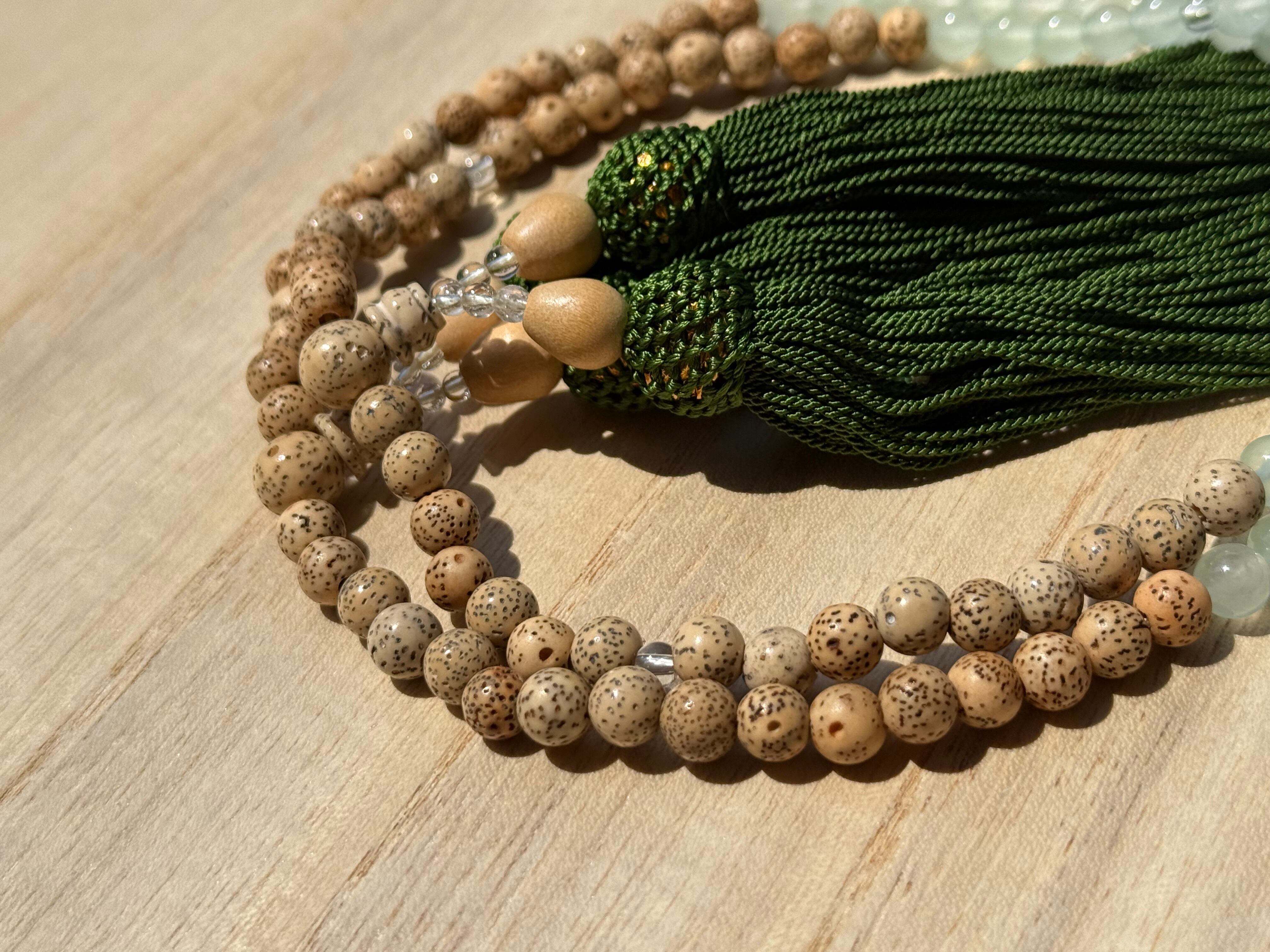 全宗派共通本式108珠念珠 星月菩提樹&グリーンジェード