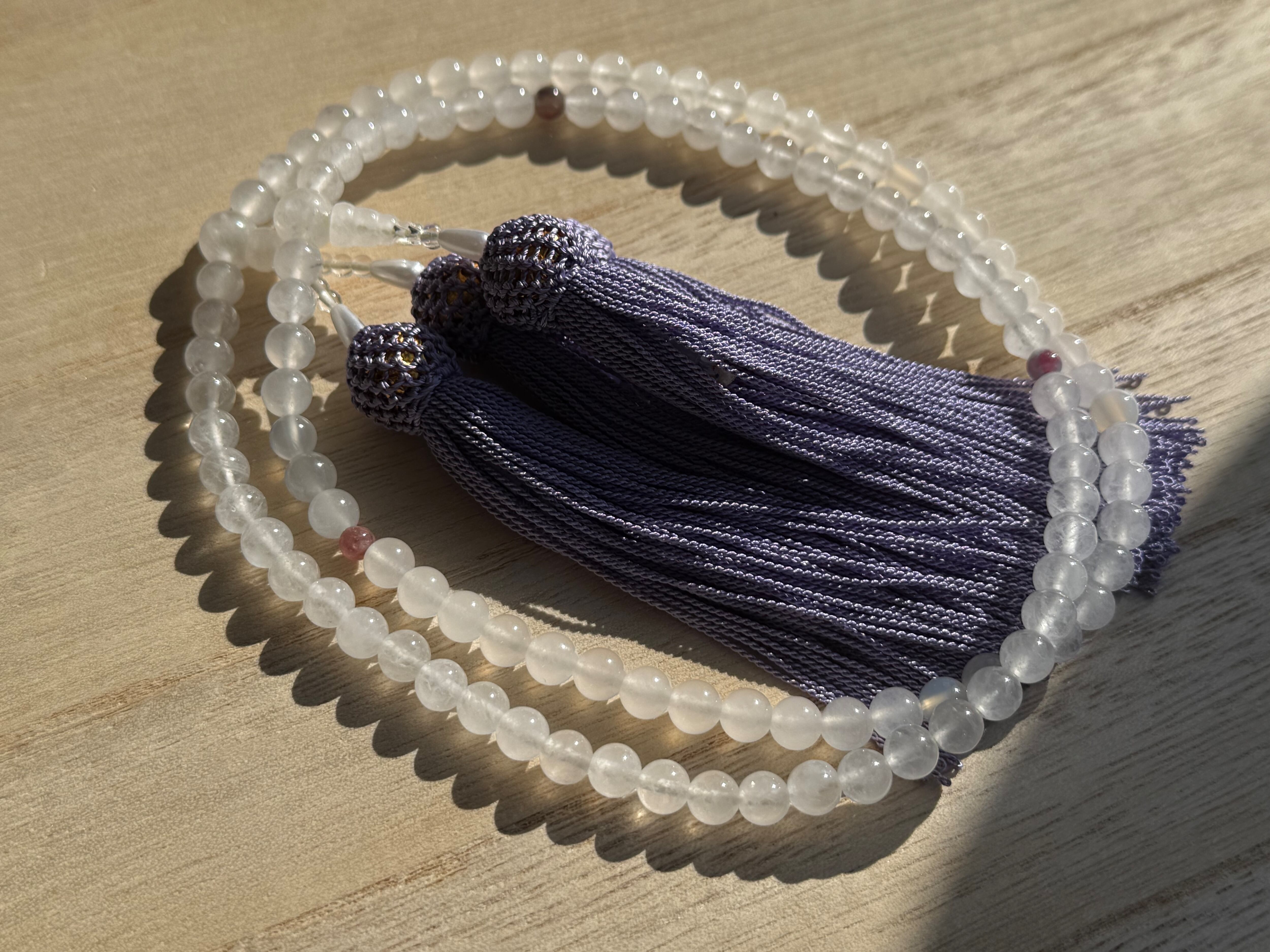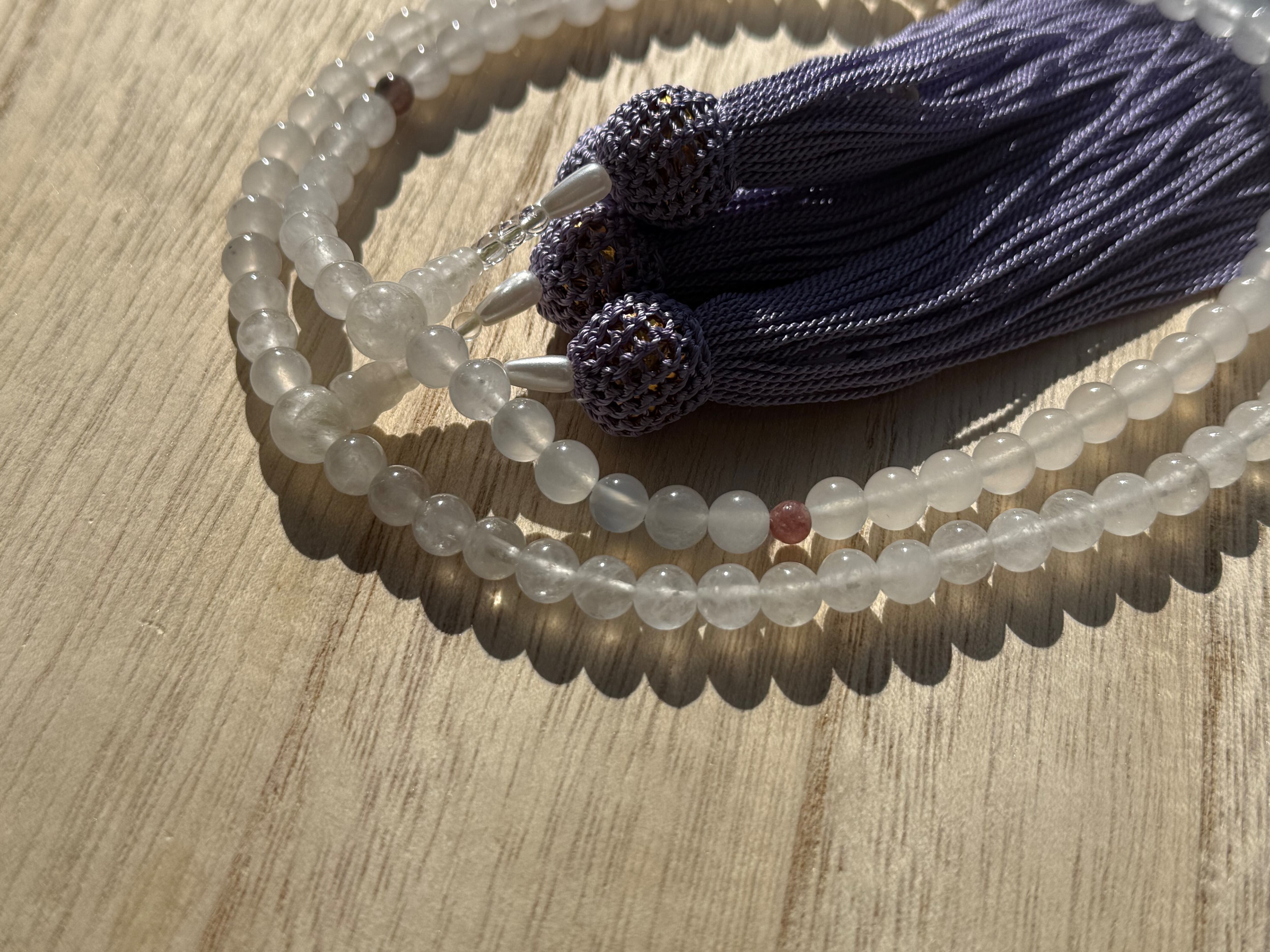 全宗派共通 108珠本式念珠 ホワイトジェード&ピンクトルマリン 数珠