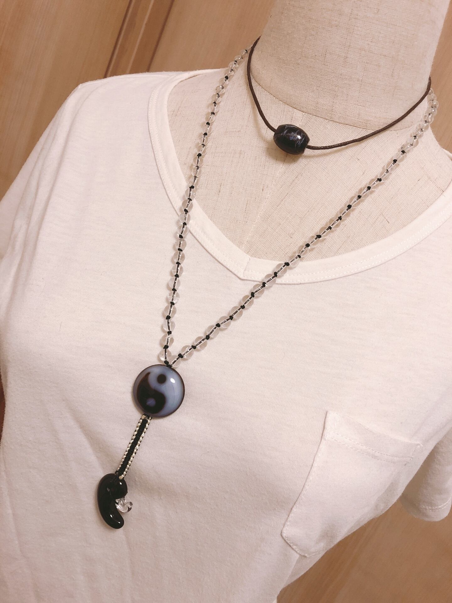 魔除けお守り★タオマーク天珠&勾玉陰陽ロングネックレス