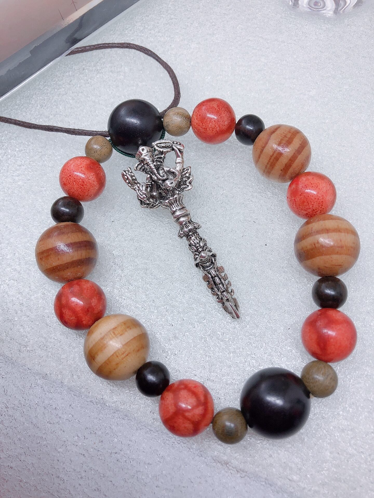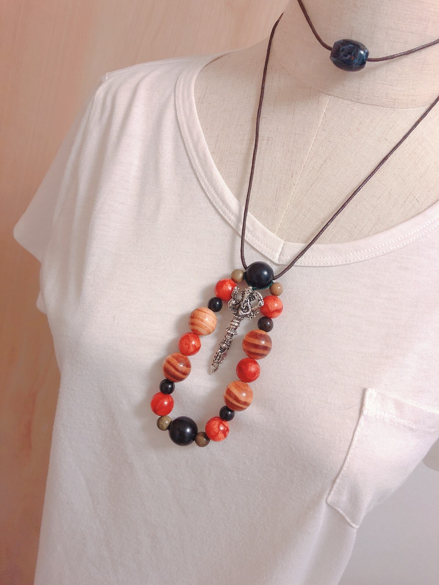男女・エスニック自然木お守りガネーシャネックレス