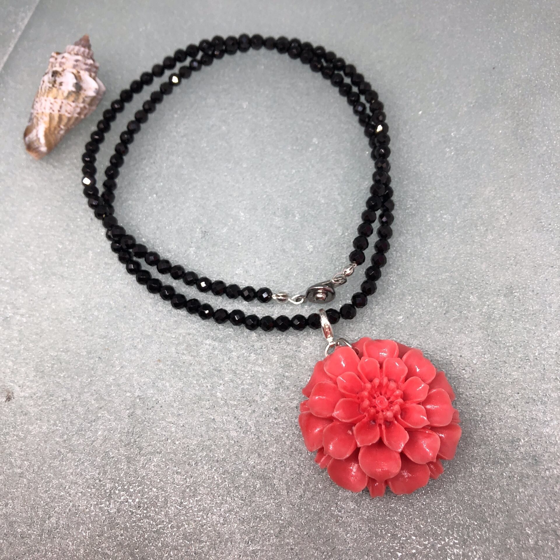 数量限定♡ダリア・サーモンピンク、スピネルネックレス♡