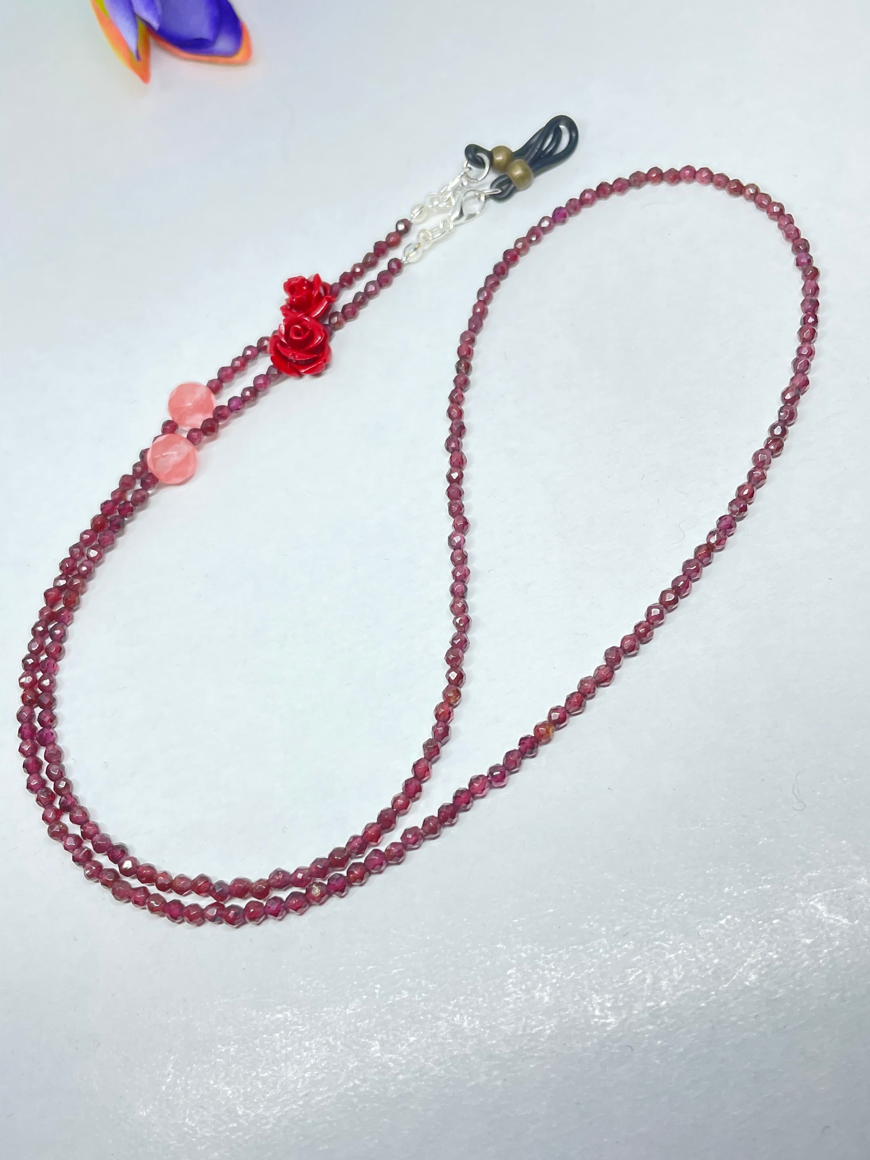 キラキラガーネット・ネックレスにもなる2wayメガネチェーン