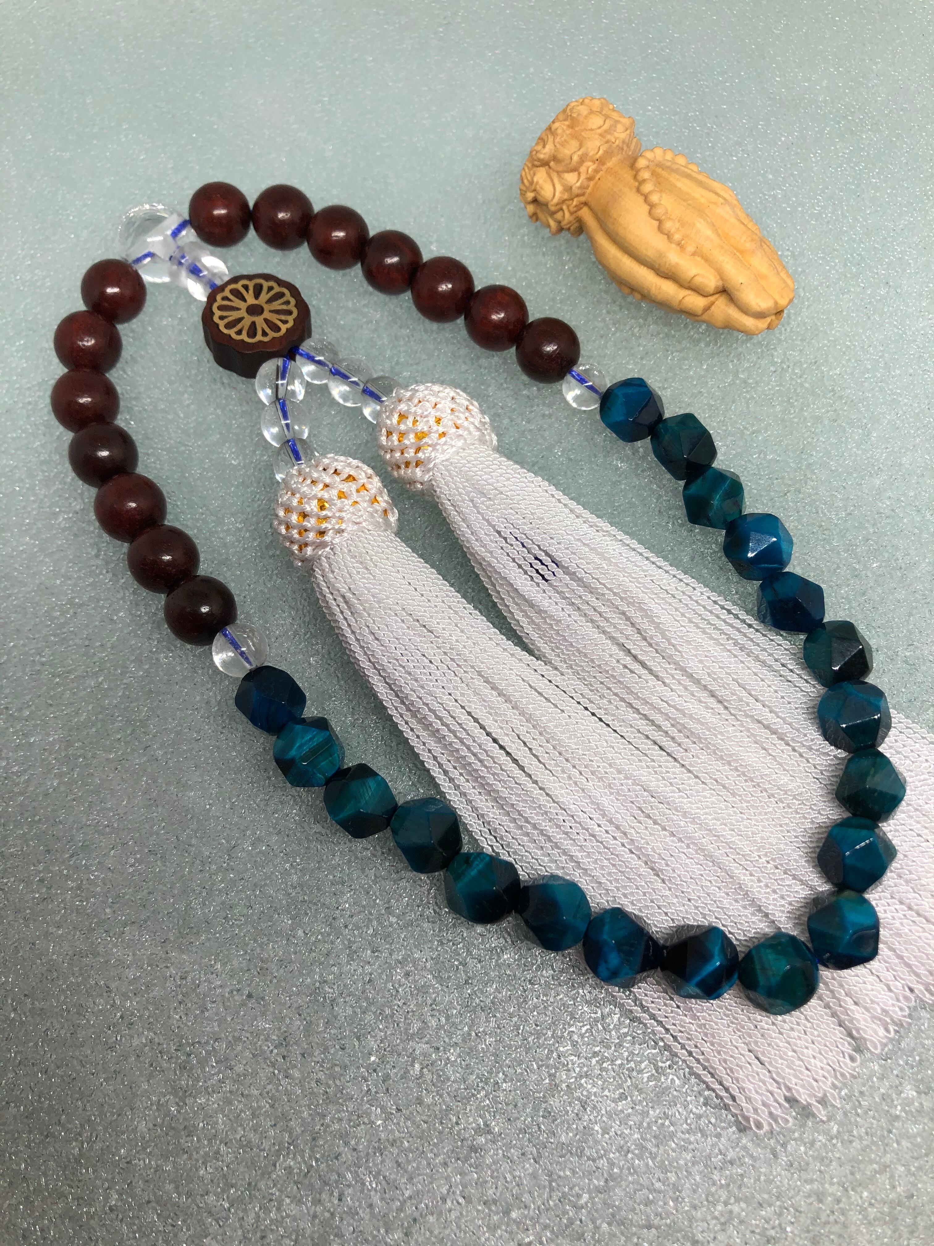 オリジナルデザイン【略式数珠・女性用】カットブルータイガーアイ&紫檀