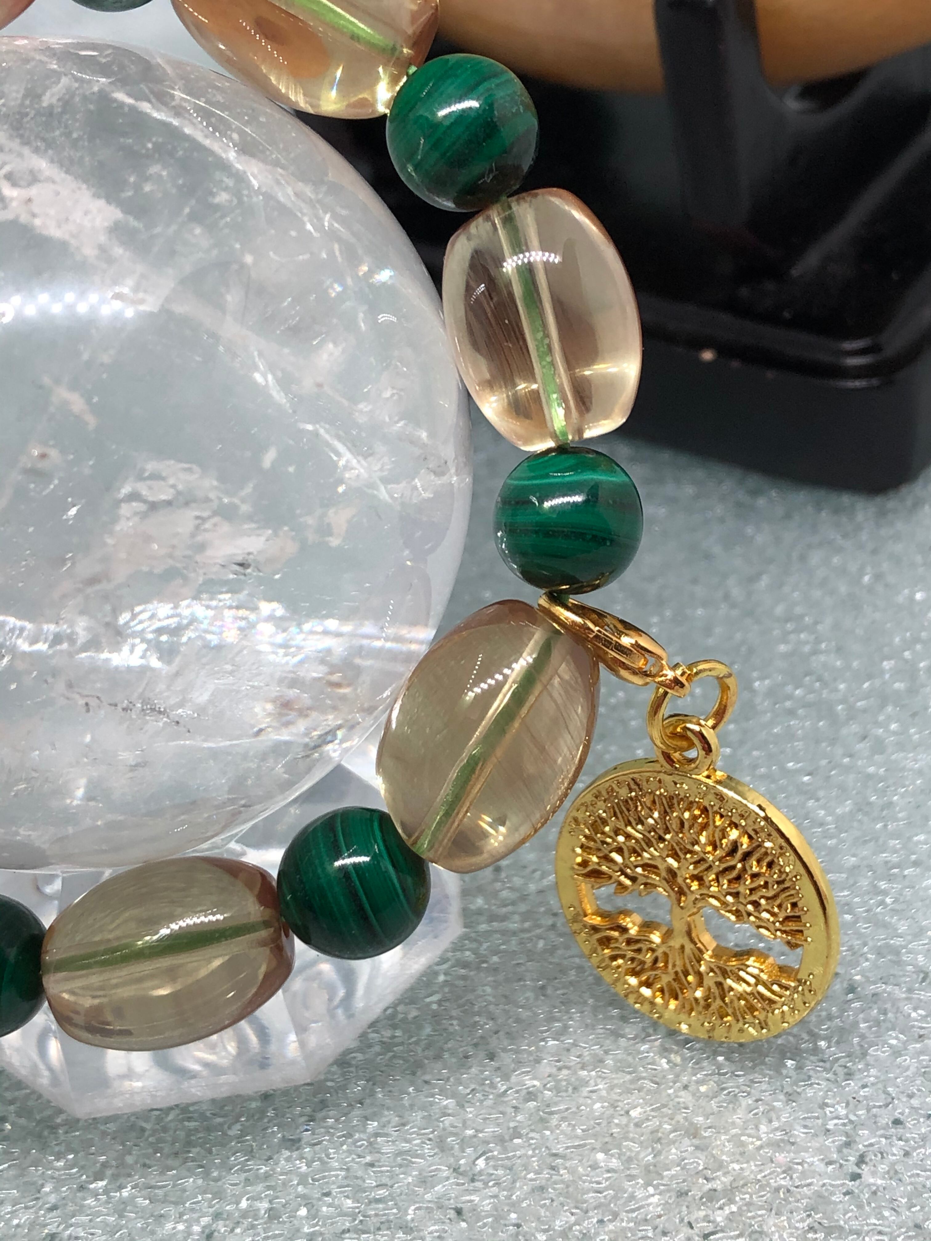【精神リセットと人間関係良好の願い】マラカイト&アンデシンタンブル ツリーオブライフチャームお守りブレスレット