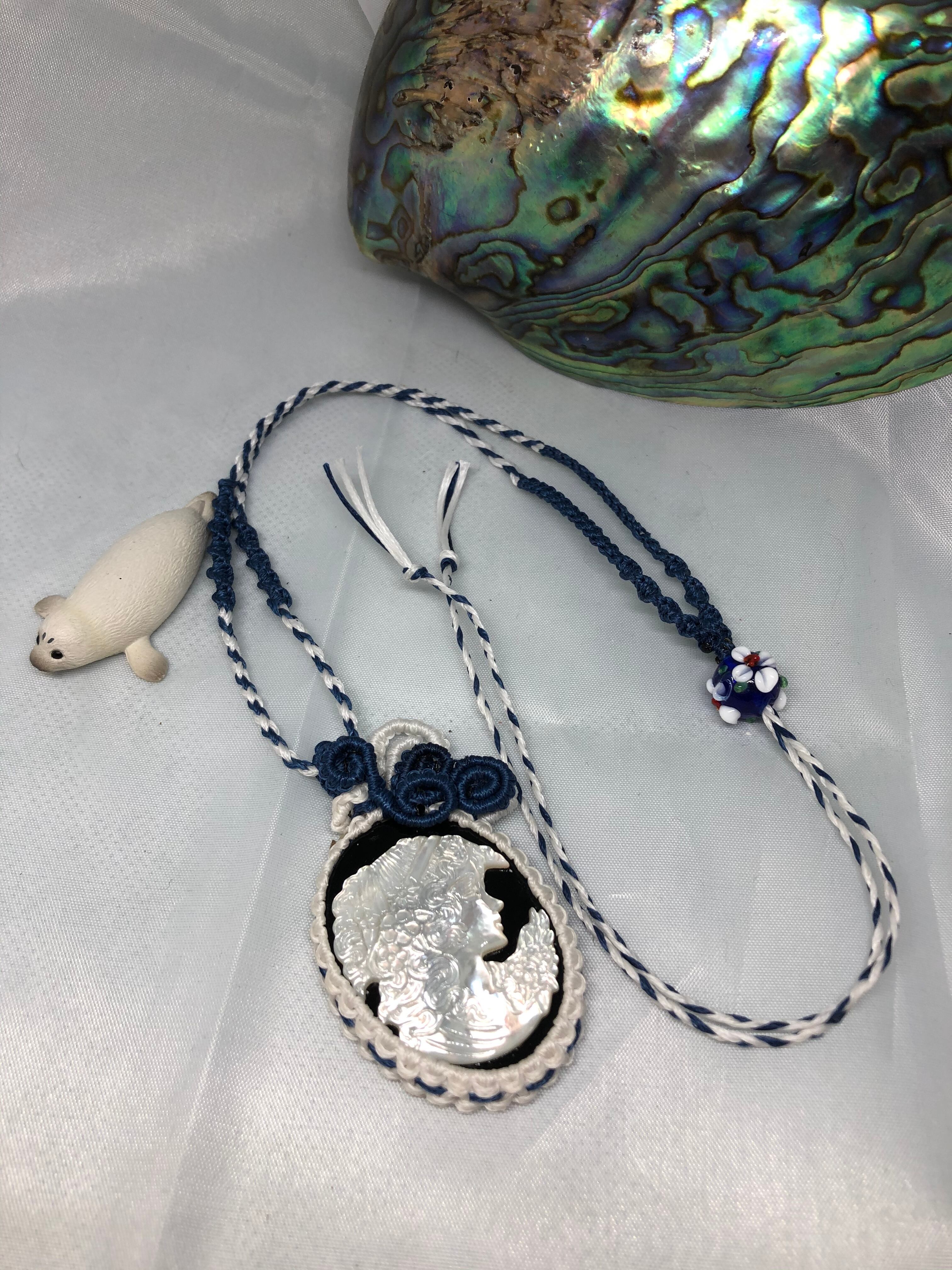 コラボ商品✳︎マザーオブパール&オニキス✳︎上品なカメオネックレス