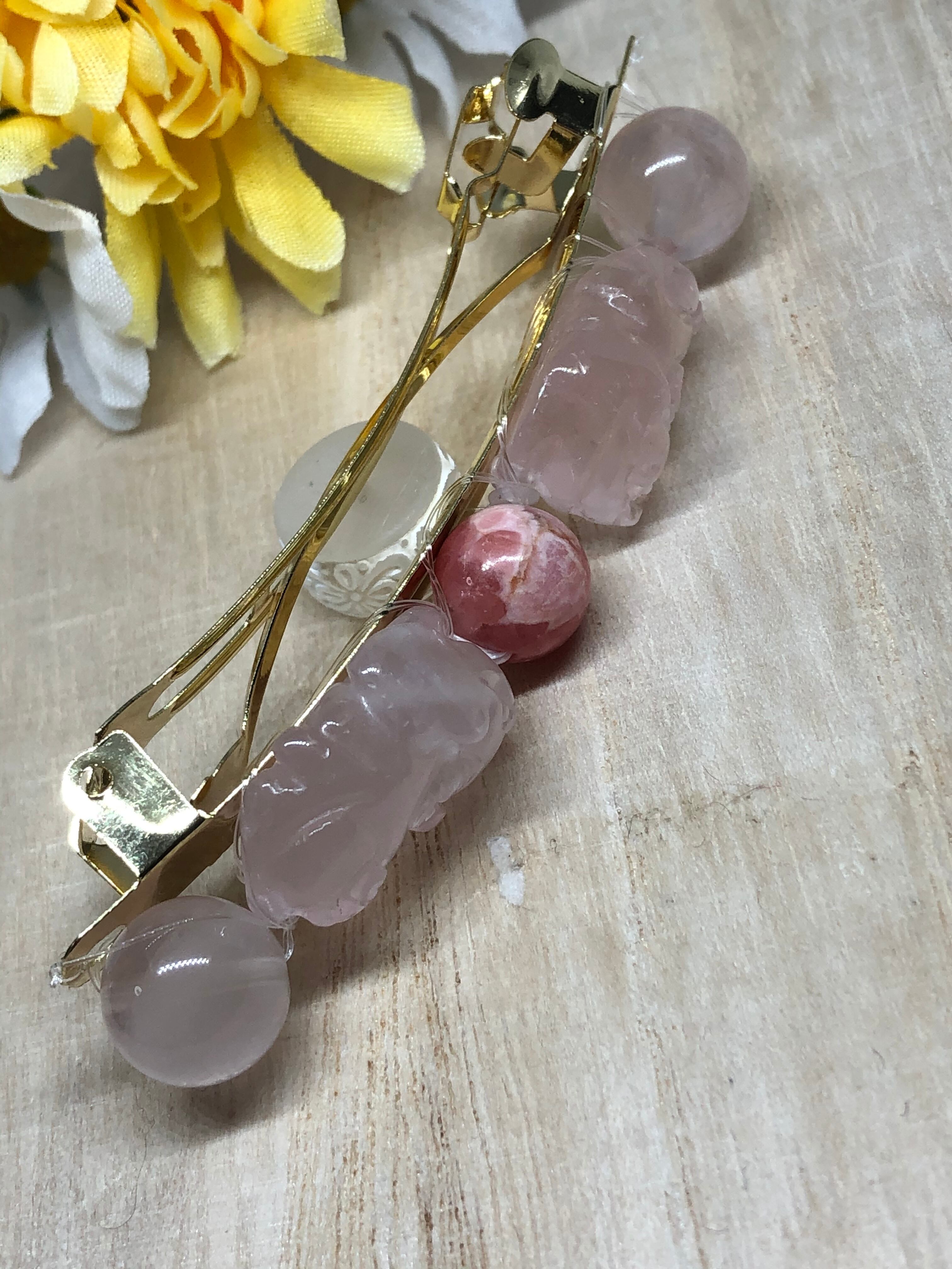 可愛すぎておすすめです♡バレッタ♡ひきゅうちゃんローズクォーツ♡