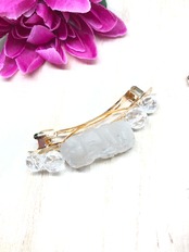 ペアの貔貅ちゃんを髪の後ろで遊ばせている