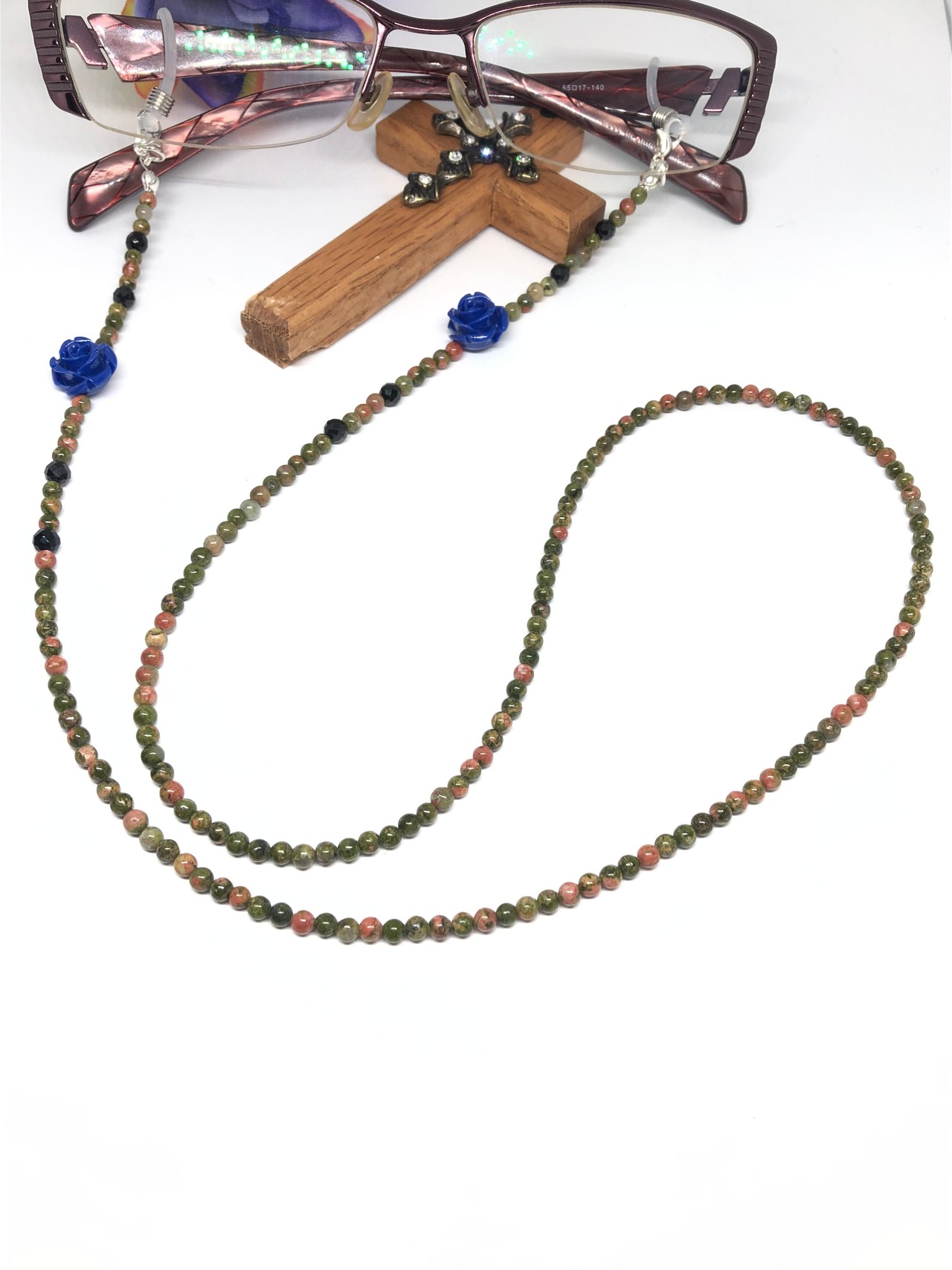 ユナカイト✳︎サンゴ青薔薇✳︎ネックレスにもなる2wayメガネチェーン