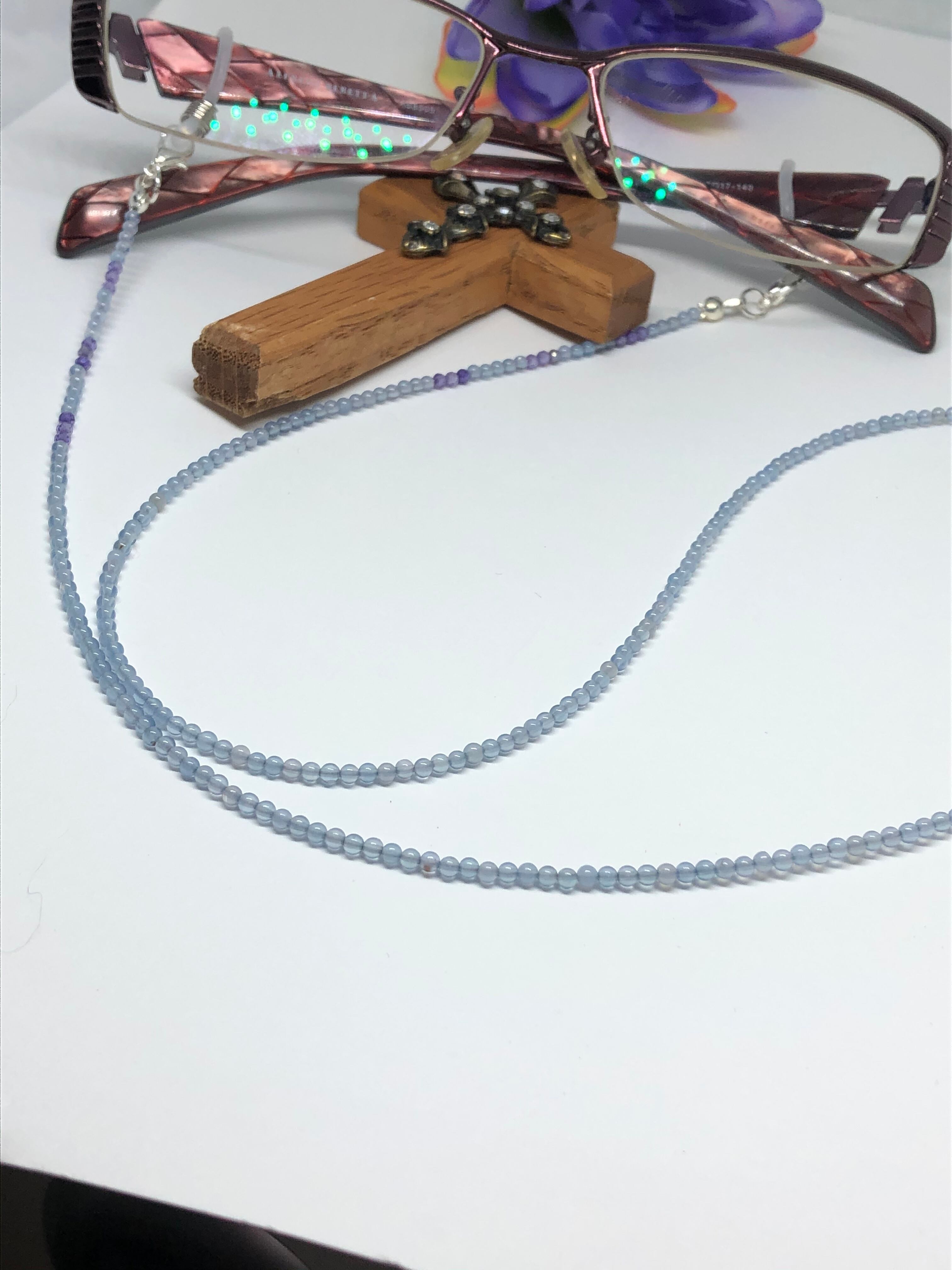 ブルーアゲート&ジルコニア✳︎ネックレスにもなる2wayメガネチェーン