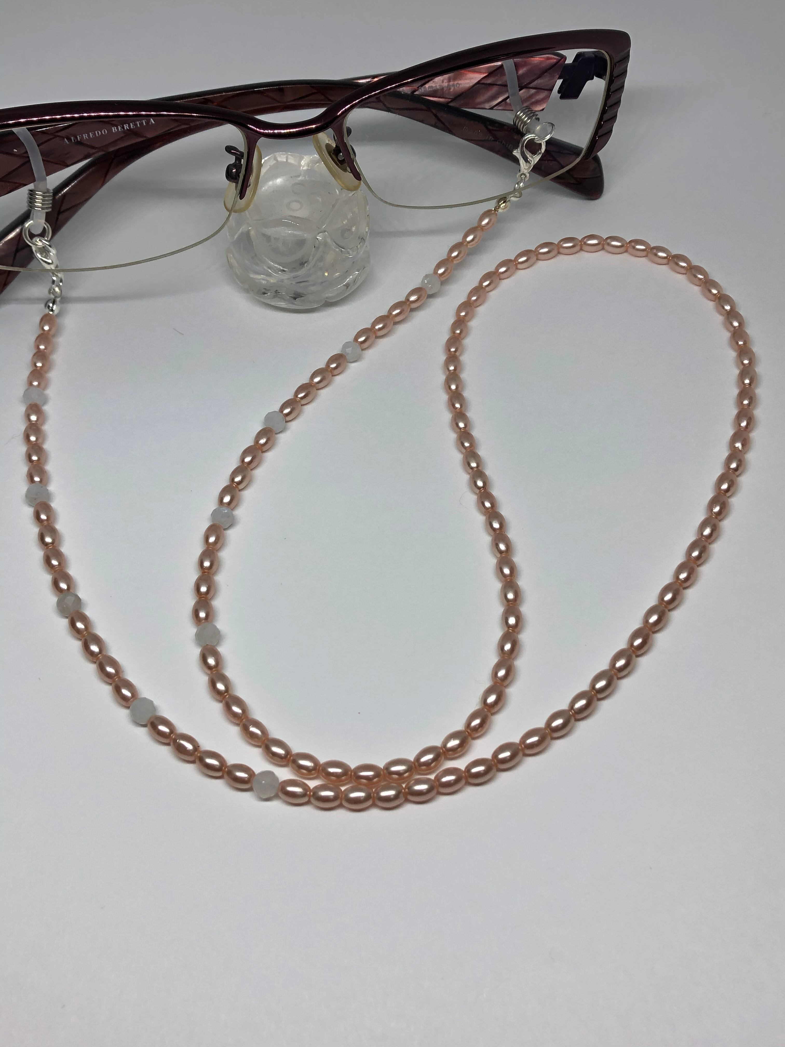 チェコビーズ✳︎メガネチェーン✳︎ガラスパール&レインボームーンストーン✳︎ネックレス