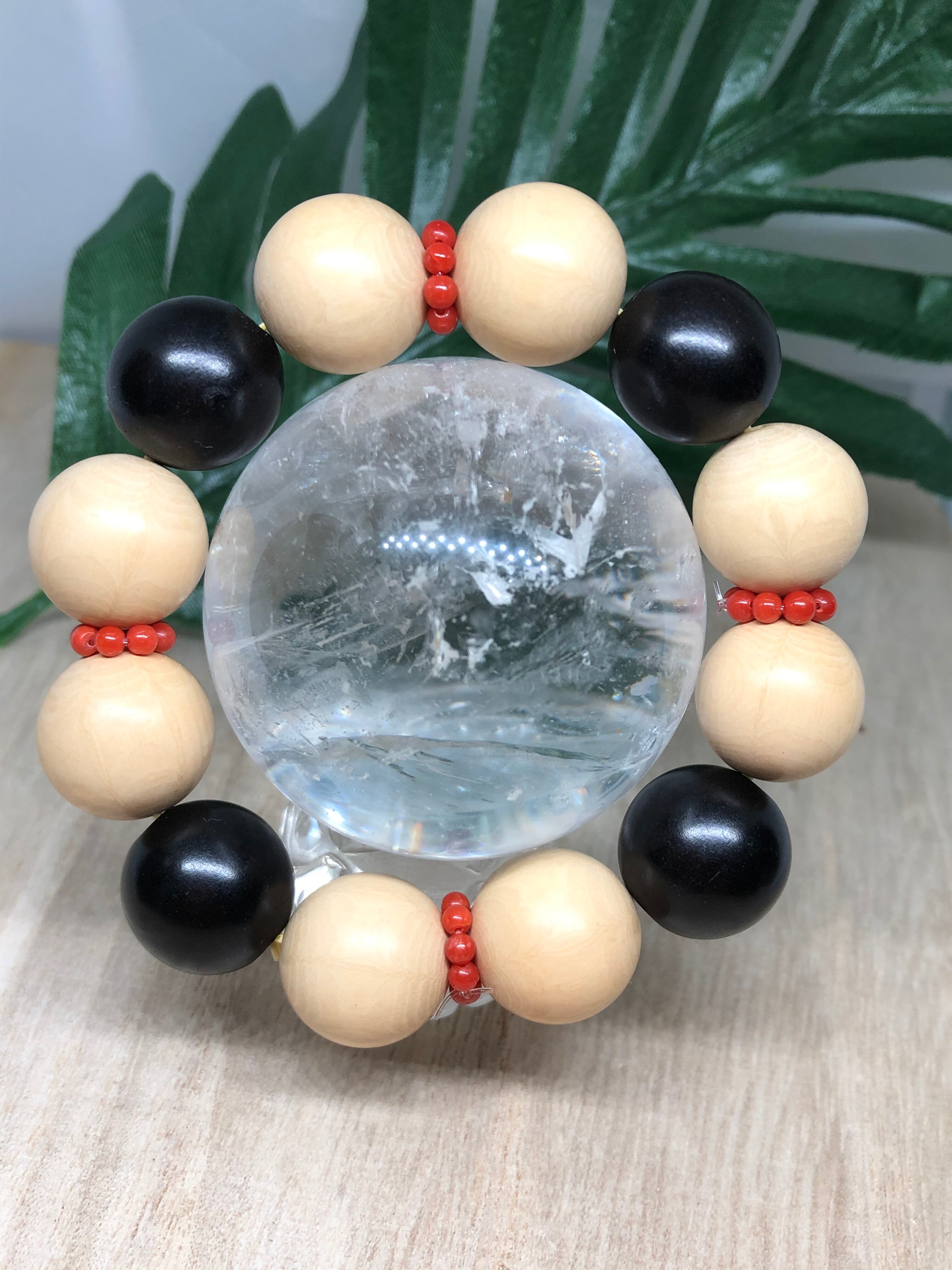【生命力・邪気払い】黒檀&降龍木&地中海赤珊瑚ブレスレット