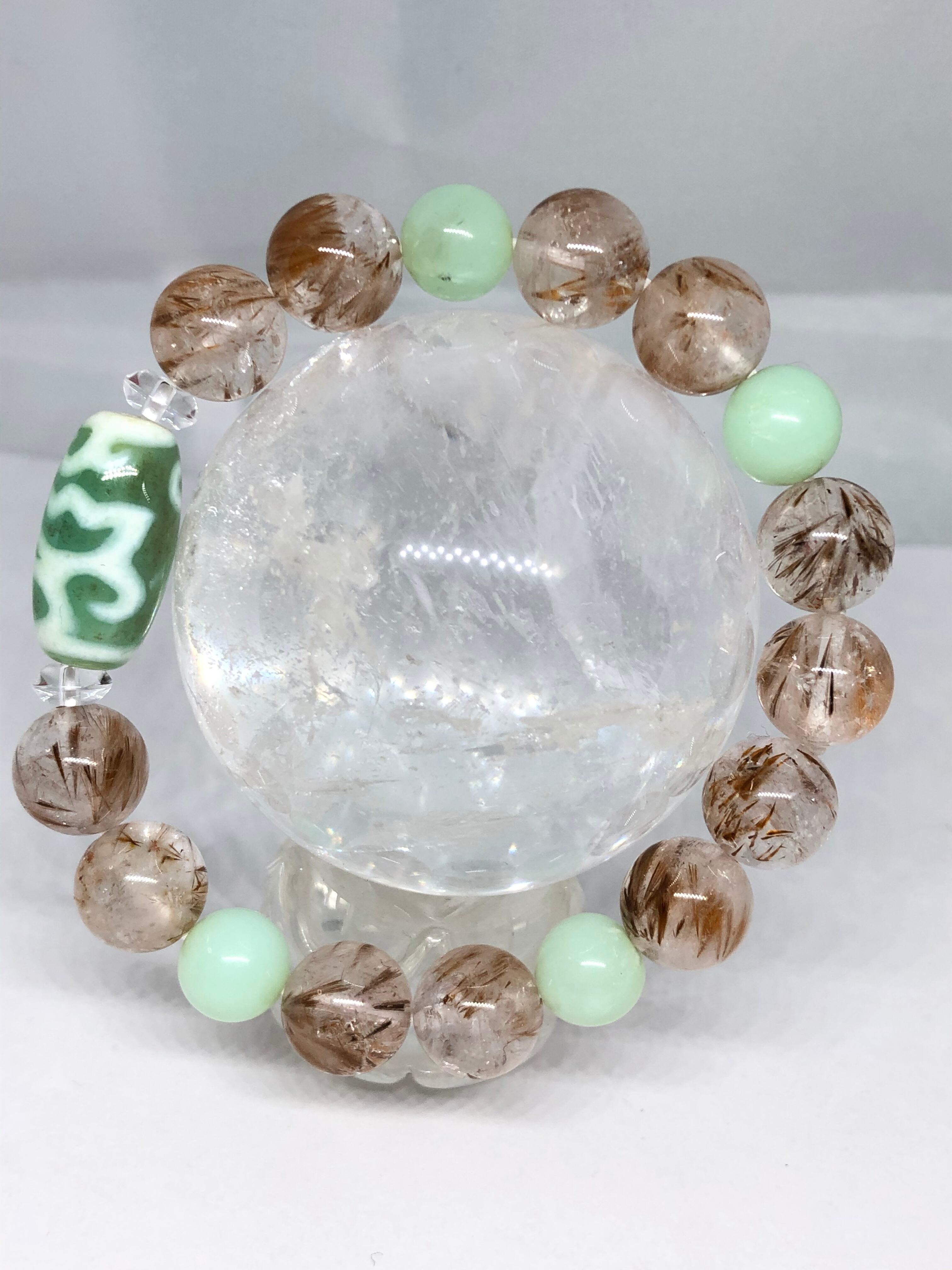 【悩み・病魔退散の願い】水蓮花老玉髄天珠&カコクセナイト&グリーンオパール ブレスレット